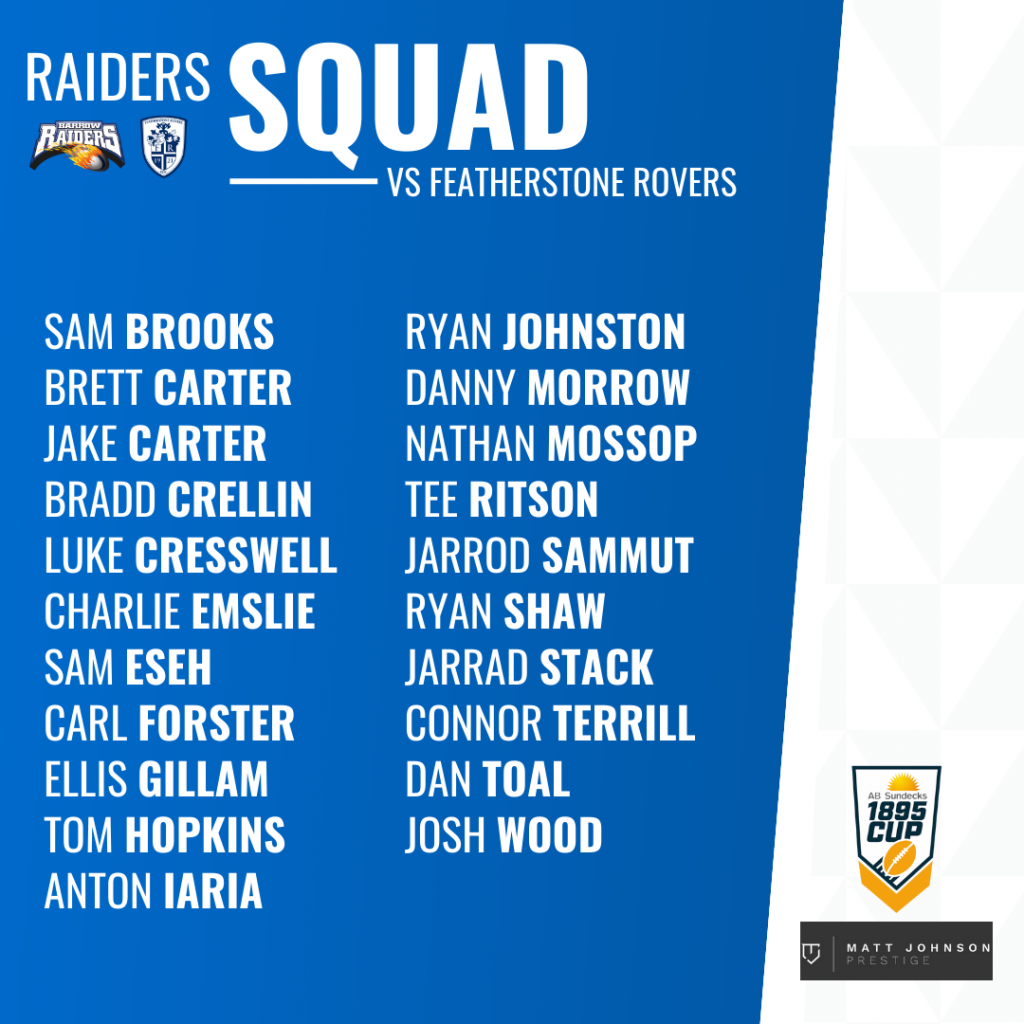 Paul Crarey has named a strong 21-man squad ahead of Sunday’s 1895 Cup Semi-Final against Featherstone Rovers. Tom Hopkins, Ryan Johnston, Connor Terrill and Dan Toal all return and are back in the fold for a spot in the line-up.