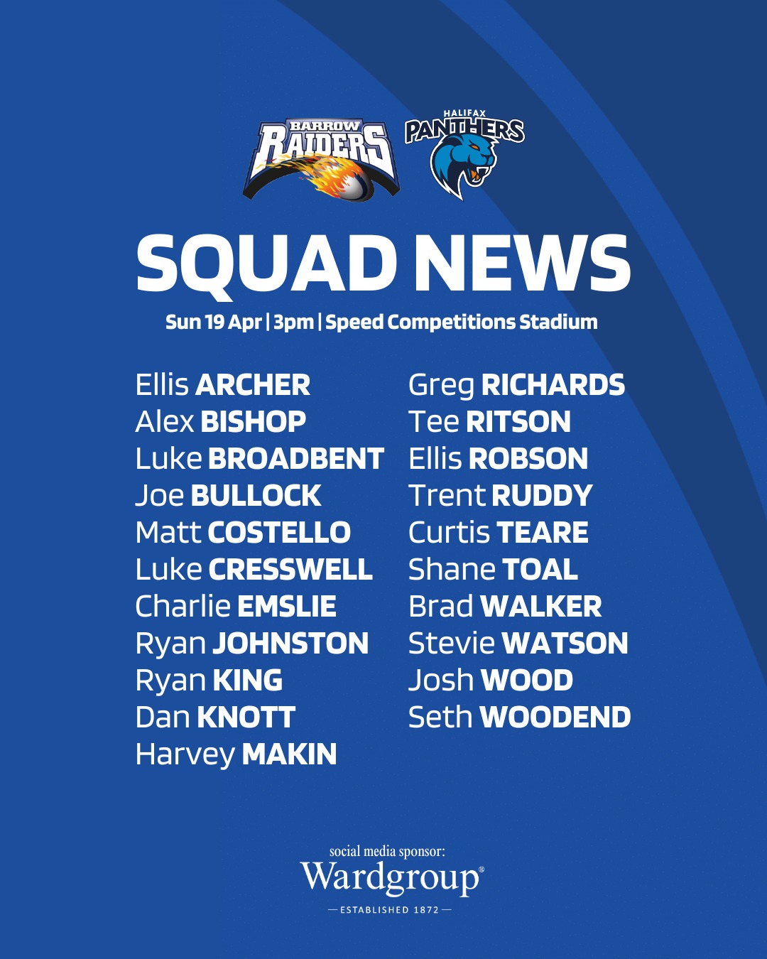 The 21-man squad has been named ahead of Sunday’s game against Halifax Panthers.