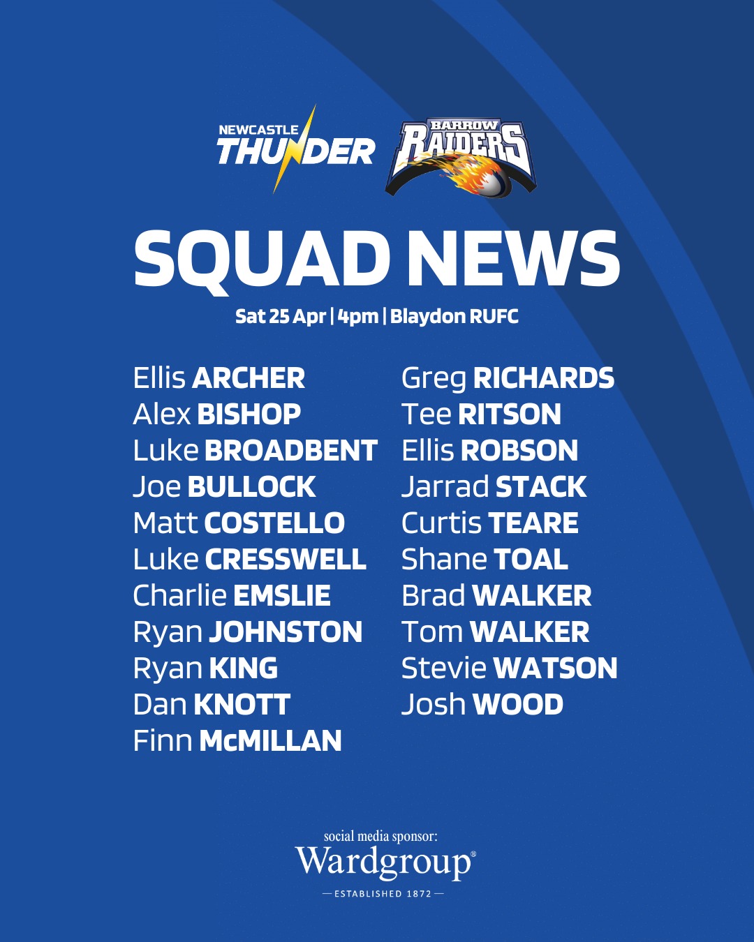 The 21-man squad has been named ahead of Saturday’s clash against Newcastle Thunder.